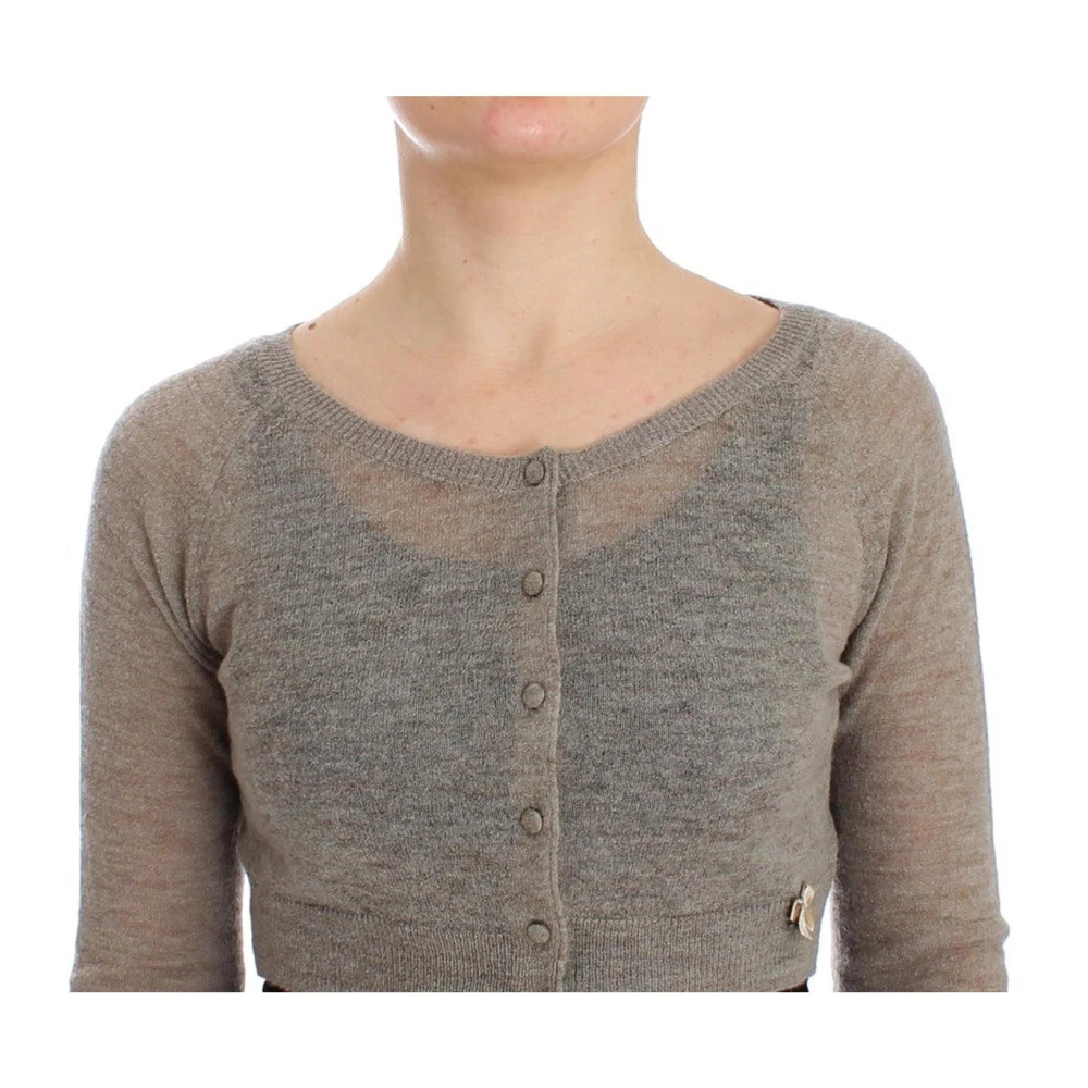 Upgrade je garderobe met deze luxueuze en stijlvolle beige Ermanno Scervino cardigan. Het cropped design voegt een moderne twist toe, terwijl de hoogwaardige materialen zorgen voor een zachte en comfortabele feel. Met knoopsluiting aan de voorkant, lange mouwen en een veelzijdige stijl die zowel chic als casual gedragen kan worden.