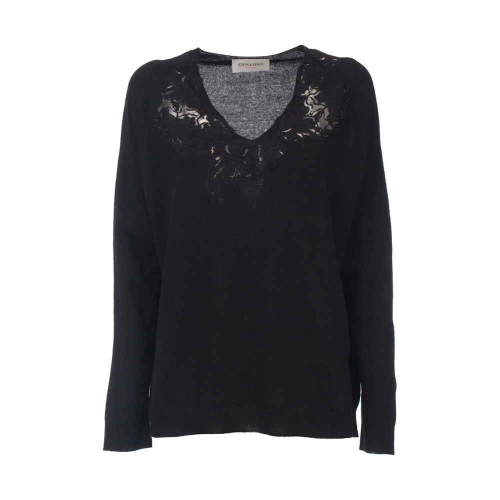 Ermanno Scervino V-hals knitwear voor vrouwen. V-hals knitwear met Ermanno Firenze borduursels. Kantborduursels rond de hals. Geperforeerd onder de borduursels. Lange mouwen. Geribbelde stof bij de manchetten en zoom. Ermanno logo aan de achterkant van de hals. Comfortabele pasvorm. Samenstelling: 40% wol, 40% acryl, 20% polyamide. Gemaakt in Itali.