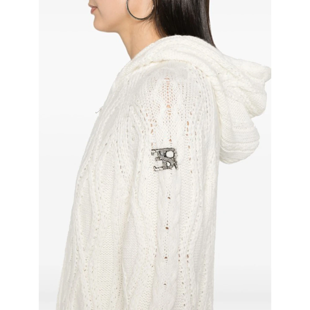 Blijf gezellig en stijlvol in deze witte Ermanno Scervino cardigan. Met een gebreid ontwerp, tweewegs ritssluiting aan de voorkant, losse capuchon, lange raglanmouwen, logo-applicatie, geribbelde zoom en onderkant, twee opgestikte zakken aan de voorkant en een rechte zoom. Gemaakt van een luxueuze mix van glas, merino, viscose, kasjmier, polyamide, messing en polyester.