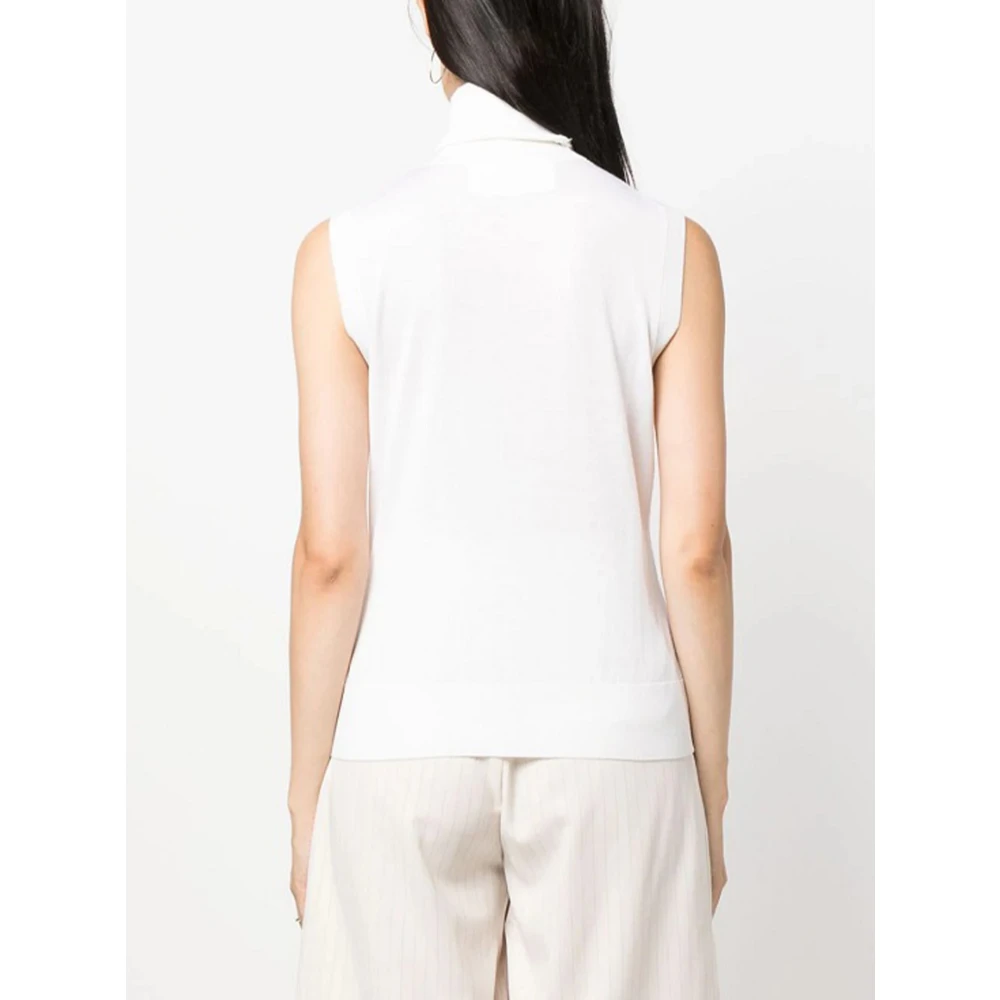 Mouwloze wollen top van Ermanno Scervino met ingewikkeld uitgesneden borduurwerk met hoge hals en guipure kant. Rechte zoom. Samenstelling: 100% Scheerwol. Wasinstructies: Handwas.