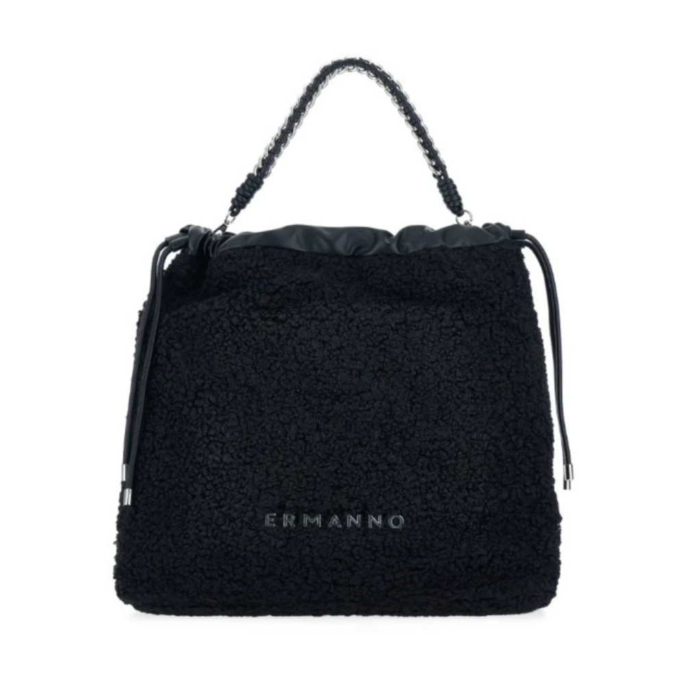 Ermanno Scervino dames clutch met logo detail aan de voorkant. Wordt geleverd met een afneembare schouderband. Afmetingen: 40 x 45 x 8 cm. Samenstelling: 80% polyester, 20% polyurethaan. Leverancierscode: 12401798Blk.