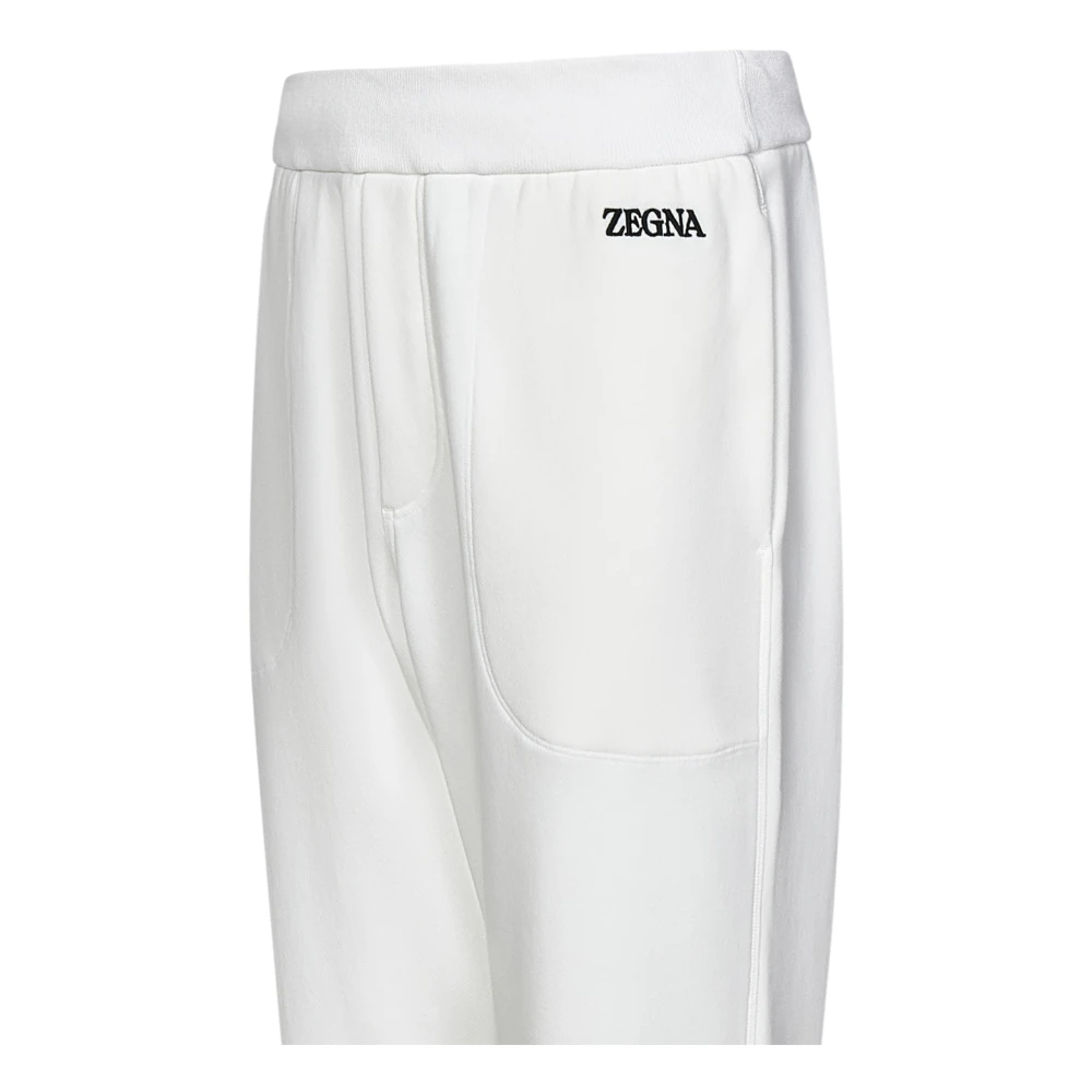 Verhoog je stijl met de witte broek van Zegna. Gemaakt van een premium mix van katoen en polyamide, deze joggers hebben logoborduursel en geribde afwerkingen, wat zorgt voor een comfortabele pasvorm en een verfijnde uitstraling voor elke gelegenheid. Het item op de foto komt overeen met maat M