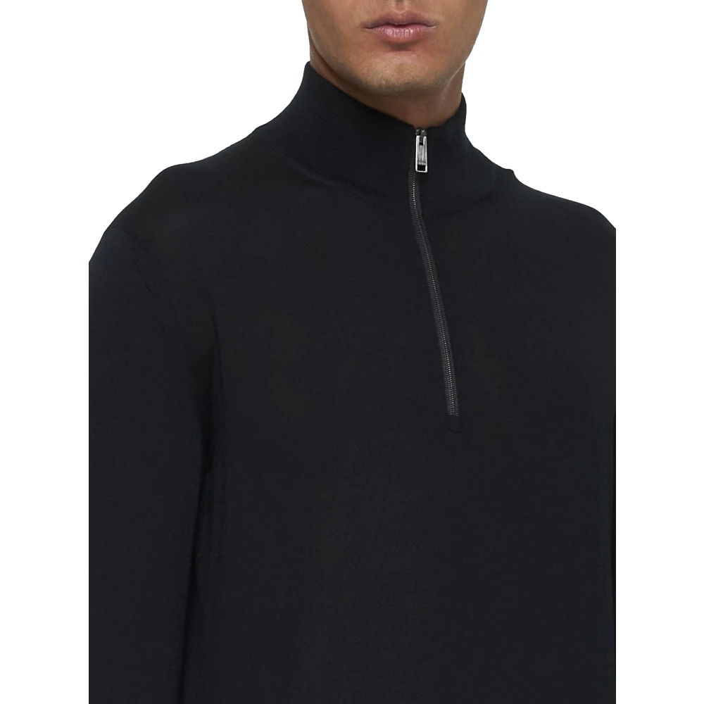 Upgrade je casual stijl met deze zwarte wollen mock sweater van Ermenegildo Zegna. Met een ritssluiting en geribbelde randen is deze trui perfect voor de moderne man.