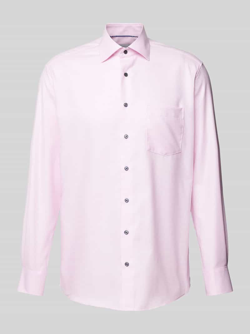 Zakelijk overhemd voor heren, van ETERNA. Puur katoen. Modern fit. Doorknoopsluiting. Kentkraag. Opgestikte borstzak. Sportmanchetten. Ruglengte bij maat 40: 79 cm. Schouderbreedte bij maat 40: 46 cm. Mouwlengte bij maat 40: 66 cm