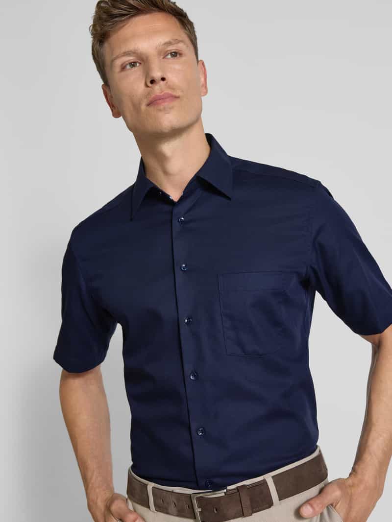 Zakelijk overhemd voor heren, van ETERNA. Puur katoen. Modern fit. Kentkraag. Knoopsluiting. Borstzak. Design met korte mouwen. Ruglengte bij maat 40: 79 cm. Schouderbreedte bij maat 40: 46 cm. Mouwlengte bij maat 40: 26 cm