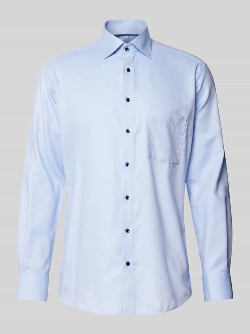 Zakelijk overhemd voor heren, van ETERNA. Puur katoen. Modern fit. Kentkraag. Knoopsluiting. Borstzak. Ruglengte bij maat 40: 70 cm. Schouderbreedte bij maat 40: 45 cm. Mouwlengte bij maat 40: 64 cm