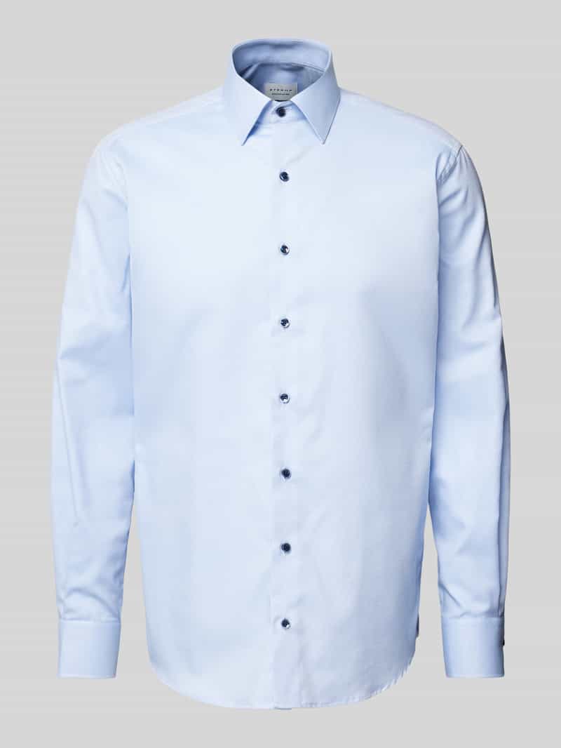 Zakelijk overhemd van ETERNA voor heren. Look: effen. Pasvorm: Regular fit. Design met lange mouwen. Overhemdkraag: Kentkraag. Knoopsluiting: enkele knopenrij. Details: hoogwaardige contrastknoop. Type manchet: Sport. Bijzondere kenmerken: strijkvrij. Materiaal: puur katoen. Ruglengte bij maat 40: 80 cm. Schouderbreedte bij maat 40: 45 cm. Mouwlengte bij maat 40: 68 cm