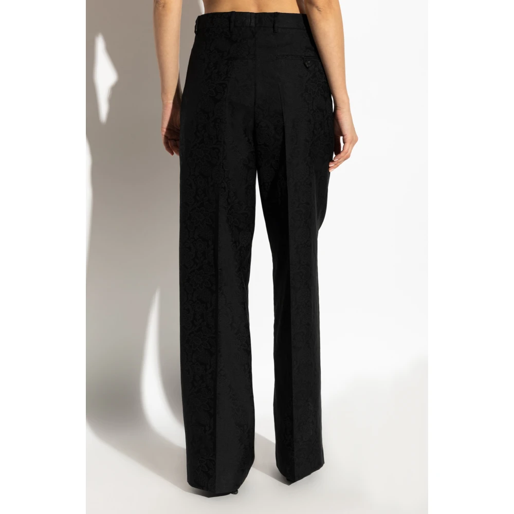 Gestreepte broek met wijde pijpen zijn het toonbeeld van elegantie en verfijning die het bekende Italiaanse modehuis Etro biedt. Gemaakt van een mix van de hoogste kwaliteit katoen en wol, hebben deze broeken een subtiel, oosters patroon genspireerd op Aziatisch design, wat een buitengewoon karakter aan hen toevoegt. De klassieke snit met wijde pijpen en een hoge taille accentueert de silhouet, en de diepe zwarte kleur maakt ze een veelzijdig stuk voor elke garderobe. De broek is voorzien van een klassieke knoop, haak en ritssluiting, evenals twee discreet gentegreerde voorste steekzakken die dagelijkse praktische bruikbaarheid bieden. Etro-broeken zijn een uitstekende keuze voor formele gelegenheden, waarbij traditie wordt gecombineerd met moderne stijl. Waarom ZOU U DIT Product Kopen? * Elegante EN Tijdloze Snijwerk die de silhouet accentueert. * Subtiel, Oosters Patroon dat een uniek karakter toevoegt. * Hoogwaardige Materialen - een mix van katoen en wol. * Universele Kleur die bij veel stijlen past. * Praktische Details - zakken en stevige sluiting. Model's Afmetingen Hoogte: 176 cm Buste: 85 cm Taille: 60 cm Heupen: 89 cm Model draagt maat: 40