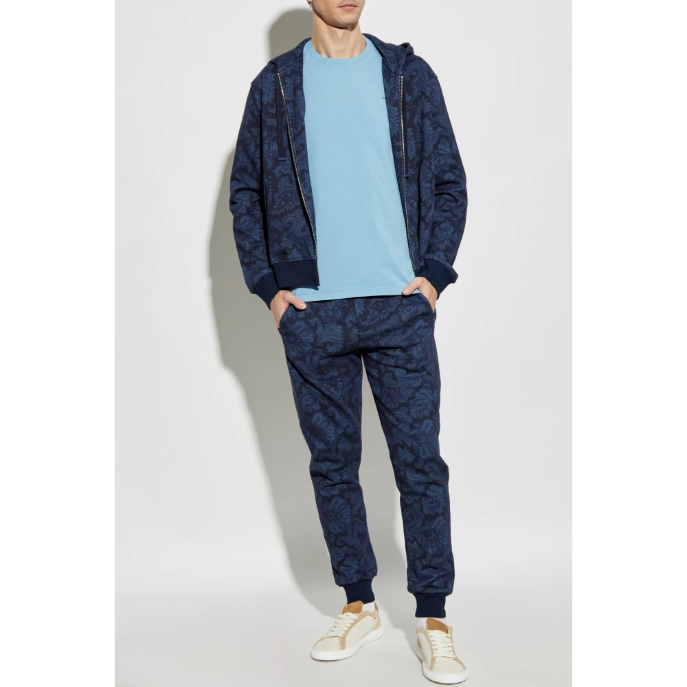 Introductie van Sweatpants uit de exclusieve collectie van het Italiaanse modehuis Etro, die comfort en chic combineren. De dominante Navy Blue kleur en decoratief Paisley patroon voegen adel en uniek karakter toe, waarbij het vakmanschap van Aziatisch design wordt benadrukt. De broek is gemaakt van een zachte mix van Katoen en Nylon, wat zorgt voor comfort en duurzaamheid. De klassieke, losse pasvorm die taps toeloopt naar de onderkant, afgewerkt met enkelboeien, garandeert bewegingsvrijheid en een elegante uitstraling. Praktische zijzakken en een trekkoord in de tailleband zorgen voor individuele aanpassing aan de silhouet. Waarom ZOU U DIT Product Kopen? * Uniek paisley patroon genspireerd door Indiase cultuur. * Hoogwaardige materialen zorgen voor draagcomfort. * Functionele details zoals een verstelbare tailleband en zijzakken. * Een product van een gerenommeerd merk met tradities. Model's Afmetingen Hoogte: 185 cm Borst: 92 cm Taille: 74 cm Heupen: 91 cm Model draagt maat: L