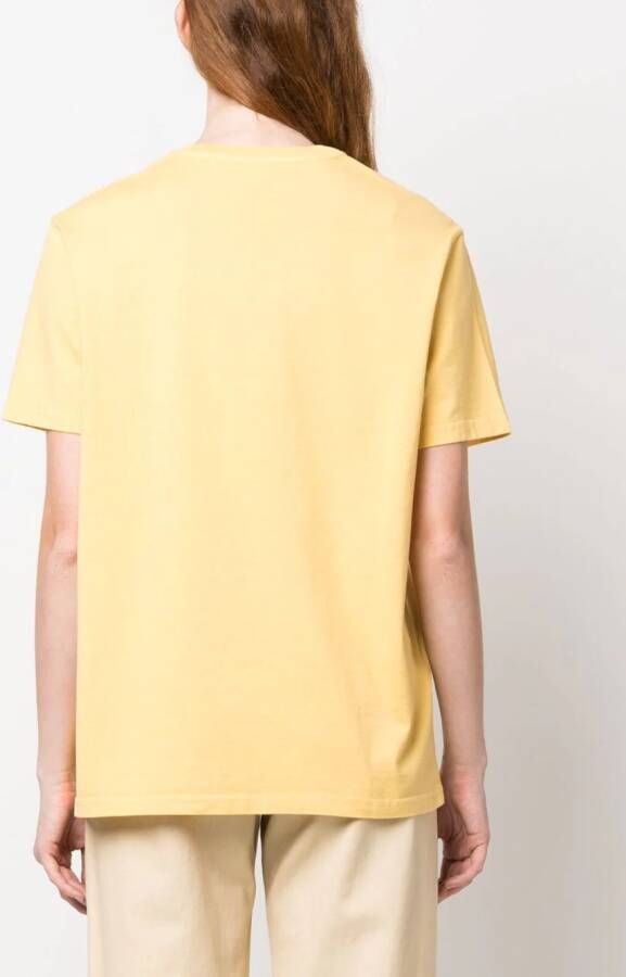 Botergeel, katoen, ronde hals, korte mouwen , geborduurd logo op de borst en rechte zoom.