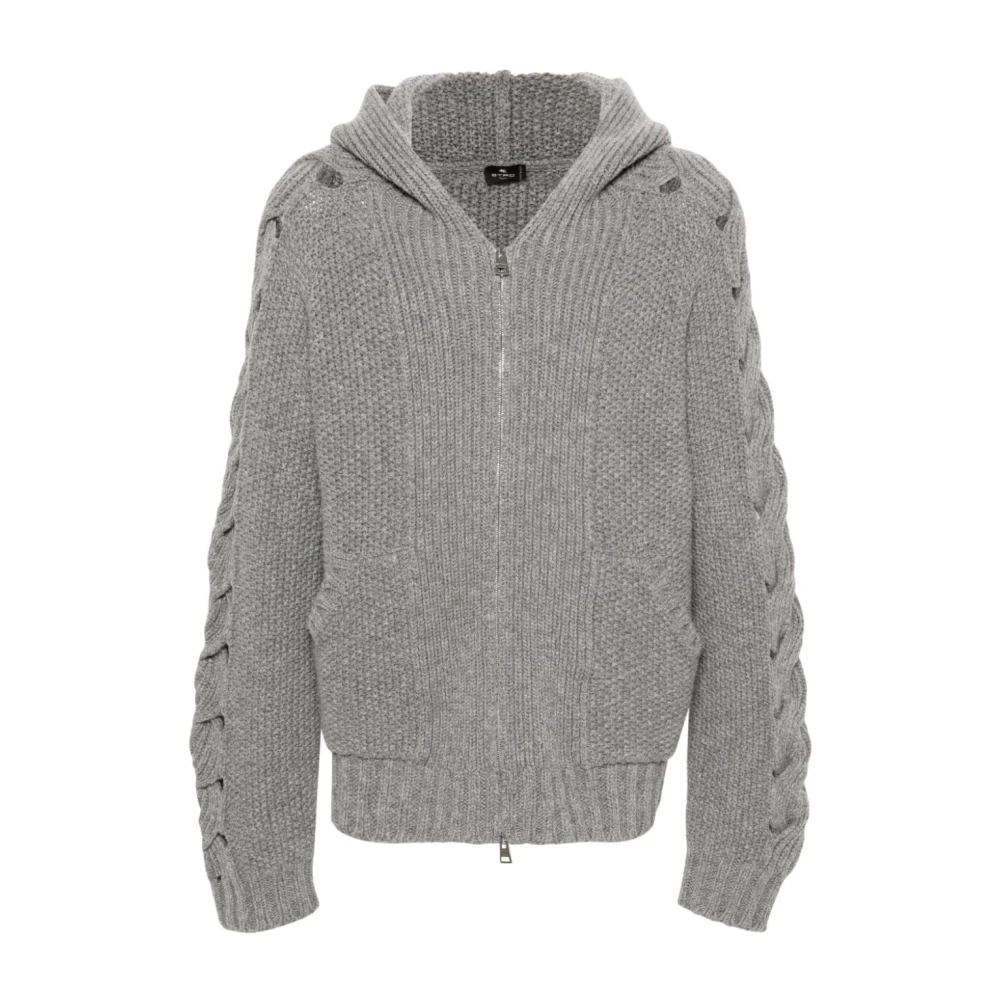 ETRO Wollen trui met capuchon en kabelbreisel Gray Heren