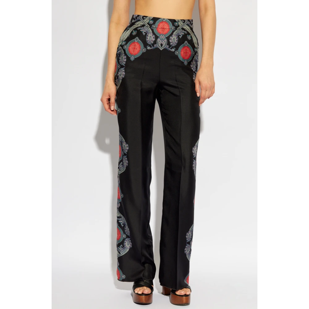 Wij presenteren u de quintessens van elegantie en verfijning in de vorm van Navy Zijden Broek van de gerenommeerde ontwerper Etro. Hun unieke karakter wordt benadrukt door ingewikkeld versierde zijkanten, waarbij een patroon van rode decoratieve medaillons en paisley motieven wordt getoond, vervaardigd met uitzonderlijke precisie in tinten blauw en wit. Dit ontwerp weerspiegelt niet alleen de rijkdom van cultuur en kunst, maar geeft het kledingstuk ook een onderscheidend, exclusief karakter. Volledig vervaardigd uit DE Hoogste Kwaliteit Zijde, maken deze broeken indruk met hun gladde en glanzende afwerking, die comfort en luxe biedt bij het dragen. Een klassieke snit met rechte pijpen zorgt voor een Elegante EN Verfijnde Uitstraling, perfect voor verschillende gelegenheden. Bovendien garandeert een hogere taille in combinatie met een zijrits en haaksluiting een moderne silhouet en perfecte pasvorm. Ongetwijfeld zijn deze broeken ontworpen om te dragen met hoge hakken, waardoor de volledige tentoonstelling van hun elegantie en accentuering van het silhouet mogelijk is. Het ontbreken van zichtbare zakken voegt gladheid en continuteit van lijn toe, waardoor hun exclusieve karakter verder wordt benadrukt. Waarom ZOU U DIT Product Moeten Kopen? * Uniek ontwerp: rijkelijk versierde zijkanten voegen een ongevenaarde stijl toe. * Luxueus vakmanschap: 100% zijde zorgt voor uitzonderlijk comfort en elegantie. * Klassieke maar moderne snit: past perfect bij het silhouet en benadrukt de beste kenmerken. * Veelzijdigheid: uitstekend voor zowel formele gelegenheden als elegante bijeenkomsten. Model`s Metingen Hoogte: 177cm Buste: 83cm Taille: 61cm Heupen: 89cm Model draagt maat: 36