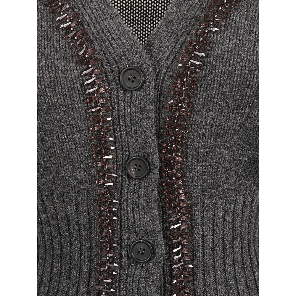 Fabiana Filippi Platinum Wol Zijde Kasjmier Trui Pailletten Gray Dames