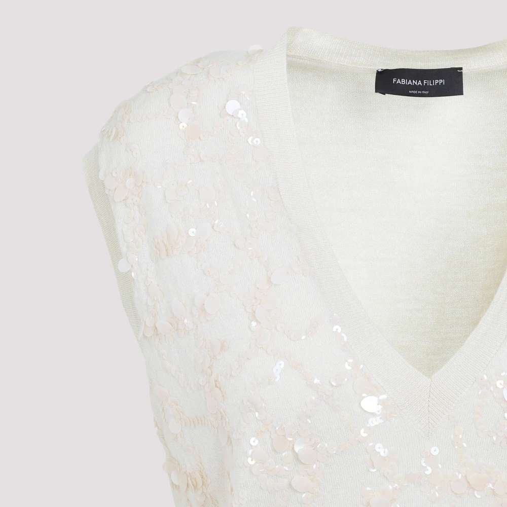 Ontdek de elegantie van de Fabiana Filippi mouwloze top, gemaakt van een luxueuze mix van 53% wol en 47% katoen in elegante nude en neutrale tinten voor een stijlvolle en comfortabele uitstraling.