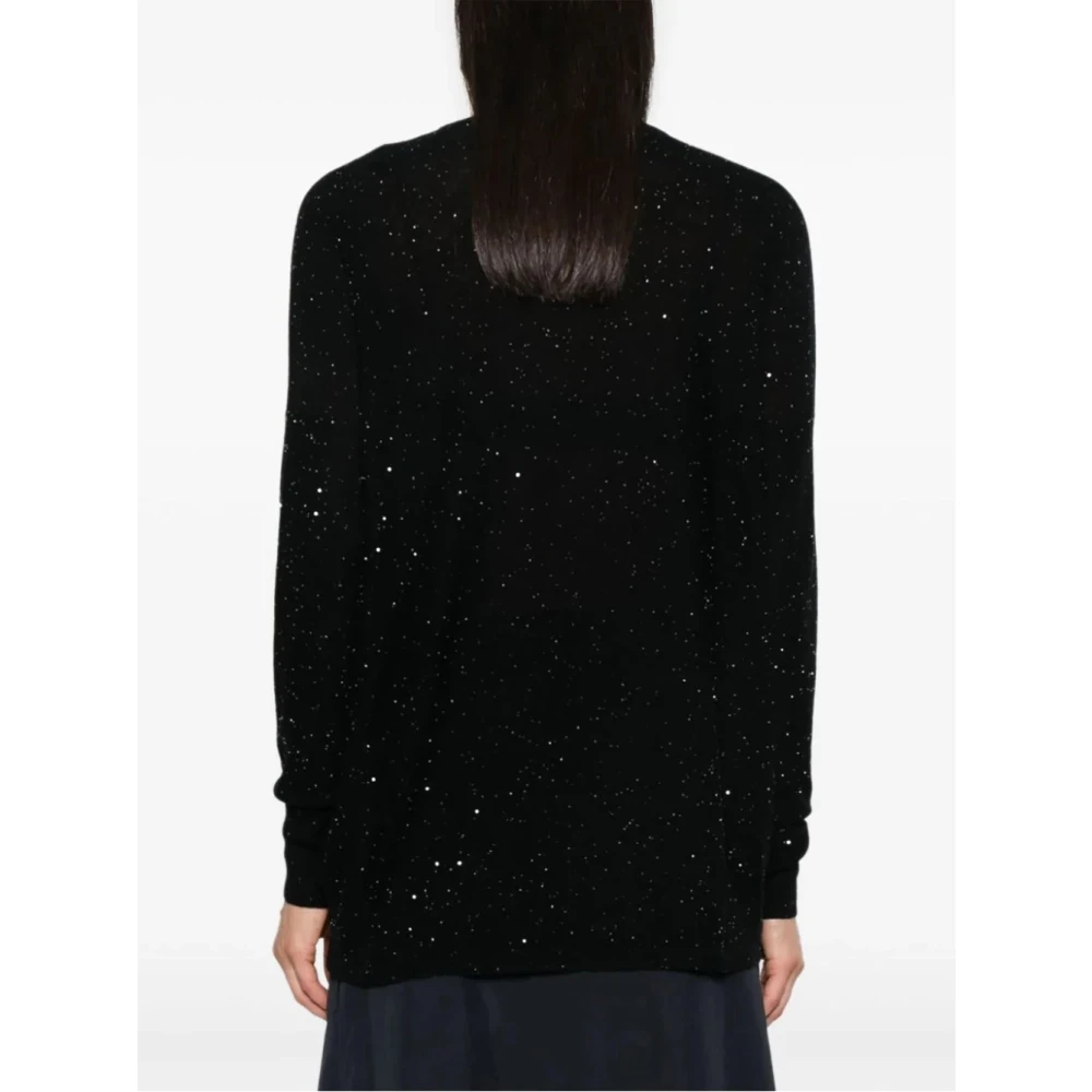 Upgrade je wintergarderobe met deze prachtige zwarte trui van Fabiana Filippi. Versierd met delicate pailletten, straalt dit kledingstuk verfijning uit en voegt een vleugje glans toe aan je outfits. Gemaakt van 100% wol.