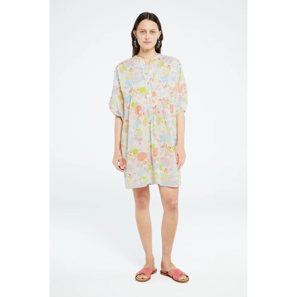 Korte jurk met volumieuze driekwart mouwen en V-hals met een platte boord en plooi details. Dover Dress is de perfecte strand cover-up voor over je bikini. Deze jurk heeft all over Caribbean Mini print en is gemaakt van 100% biologisch katoen: zacht, comfortabel en (Gots gecertificeerd)