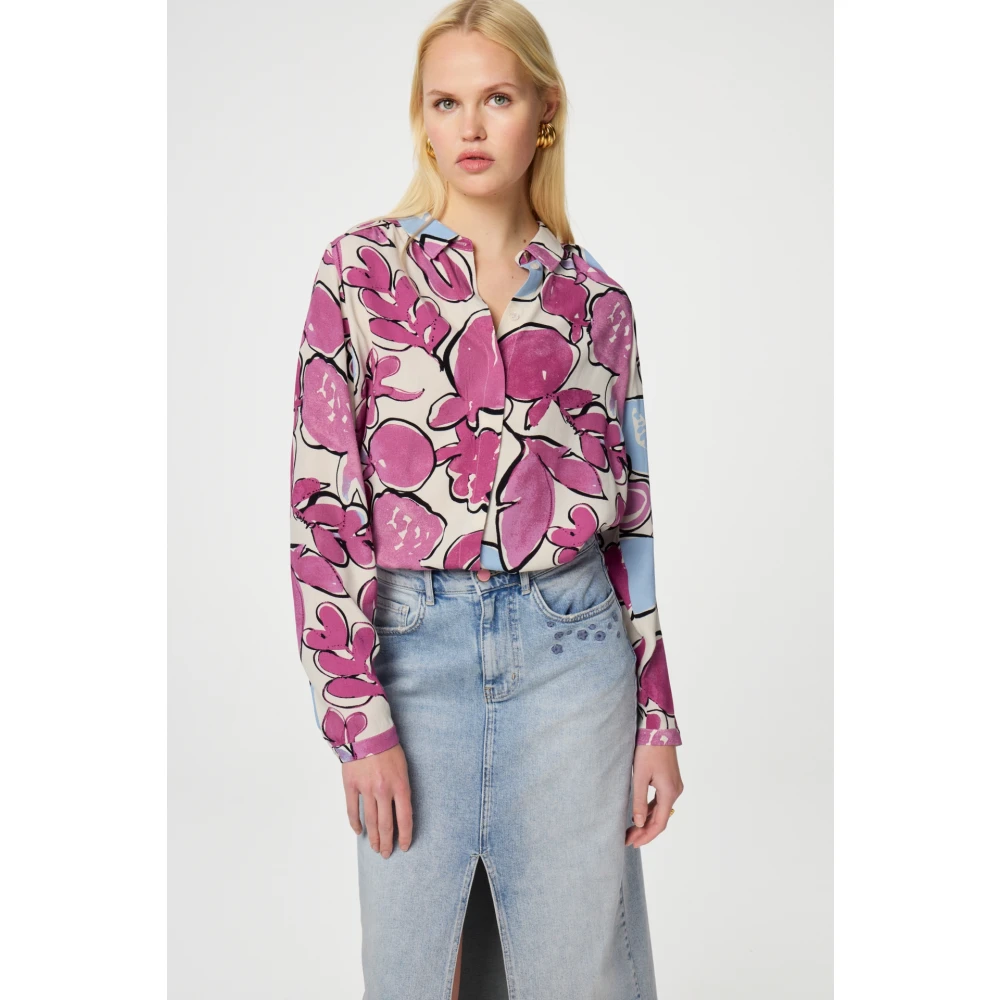 Deze blouse voor dames van Fabienne Chapot is gemaakt van een viscosemix en heeft een all over print. Het model heeft een klassieke kraag en lange mouwen. De blouse heeft een knoopsluiting