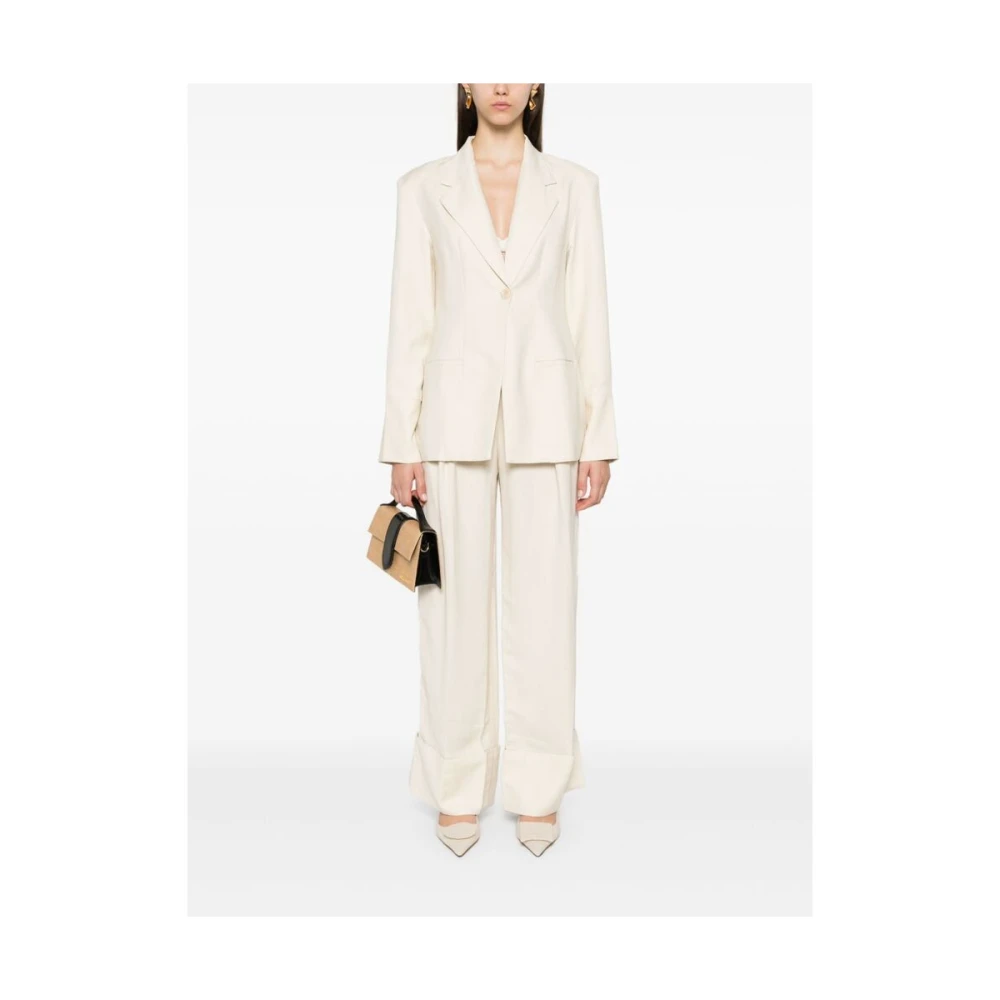 Upgrade je stijl met deze zand beige wijde broek van Faithfull the Brand. Met een getailleerd ontwerp met plooien, verborgen knoop, haak- en ritssluiting, wijde pijpen, twee zijdelingse insteekzakken en omgeslagen manchetten. Dit item komt van een merk dat beoordeeld is met drie van de vijf door Good On You, gericht op hun impact op de planeet, mensen en dieren.