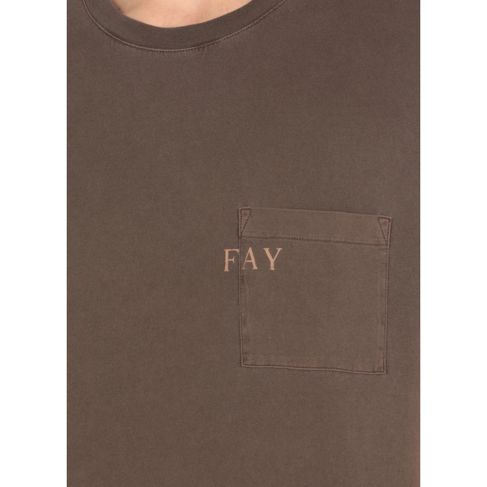Upgrade je casual garderobe met dit bruine Fay katoenen t-shirt voor mannen. Met een ronde hals, korte mouwen en een borstzak is dit t-shirt zowel stijlvol als comfortabel. Het logo in contrasterende kleur aan de voorkant voegt een moderne touch toe. Het model is 190 cm lang en draagt maat L.