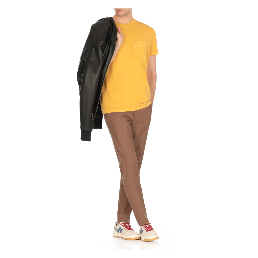 Upgrade je casual garderobe met dit gele Fay katoenen t-shirt voor mannen. Voorzien van een ronde hals, korte mouwen en een borstzak met een contrasterend kleurlogo aan de voorkant. Het model is 190 cm lang en draagt maat L.