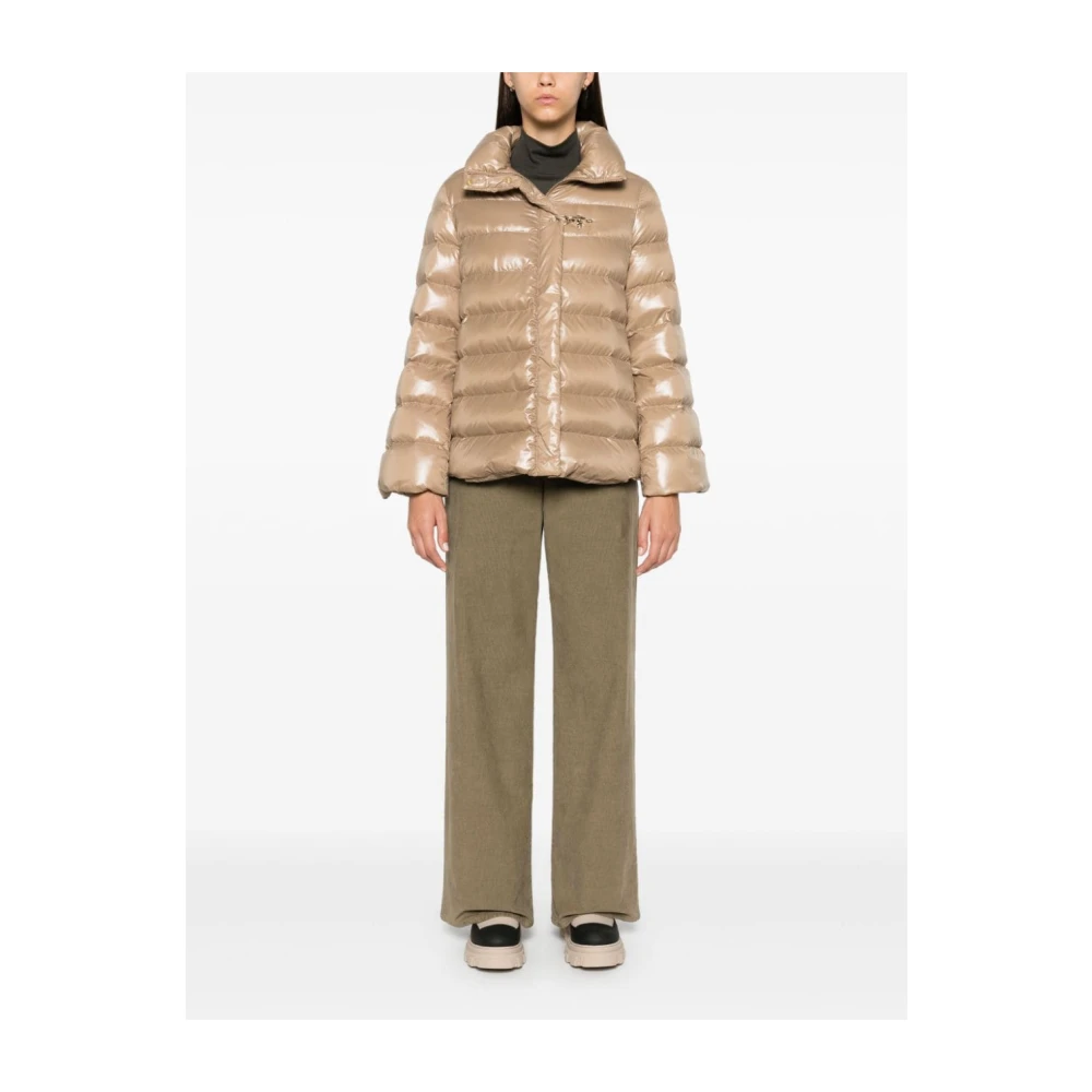 Blijf warm en stijlvol deze winter met de beige glanzende dons-gevoerde jas van Fay. Voorzien van een doorgestikt ontwerp, kreeftklauwsluiting, opstaande kraag en elastische manchetten voor extra comfort. Compleet met twee zijzakken met ritssluiting, volledige voering en een rechte zoom.