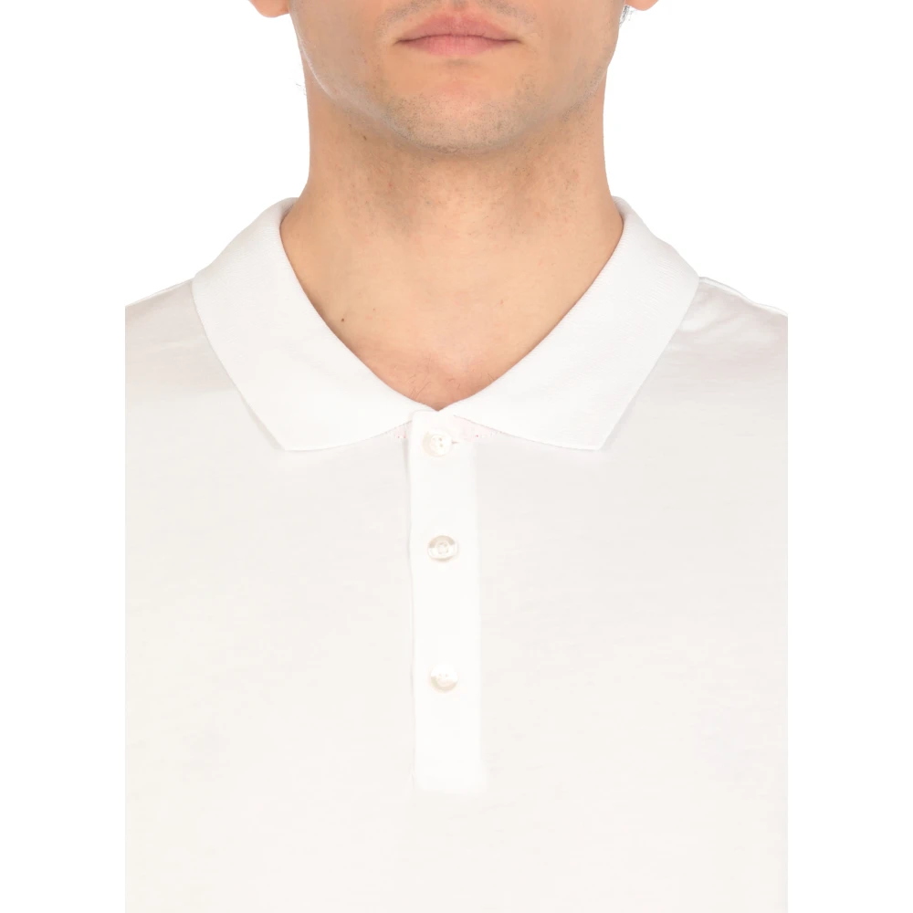 Upgrade je garderobe met dit witte Fay katoenen poloshirt voor heren. Voorzien van een klassieke kraag, korte mouwen en twee zijsplitten aan de zoom. Het model is 190 cm lang en draagt maat L.
