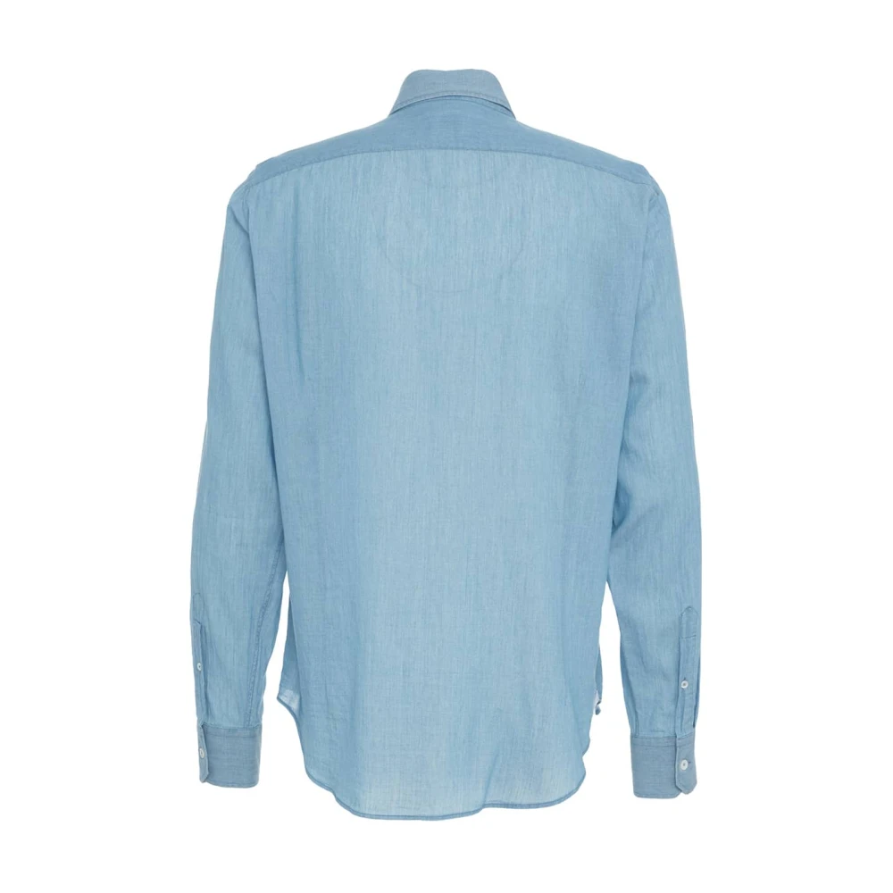 Upgrade je garderobe met dit fijne katoenen overhemd in levendig blauw van Fedeli. Gemaakt in Itali, met een stijlvolle spread kraag en knoopmanchetten. Perfect voor elke gelegenheid, de comfortabele pasvorm en luxueuze stof houden je er scherp uitziend! Modelhoogte: 190 cm; Maat: 42, Wassen op 30C.