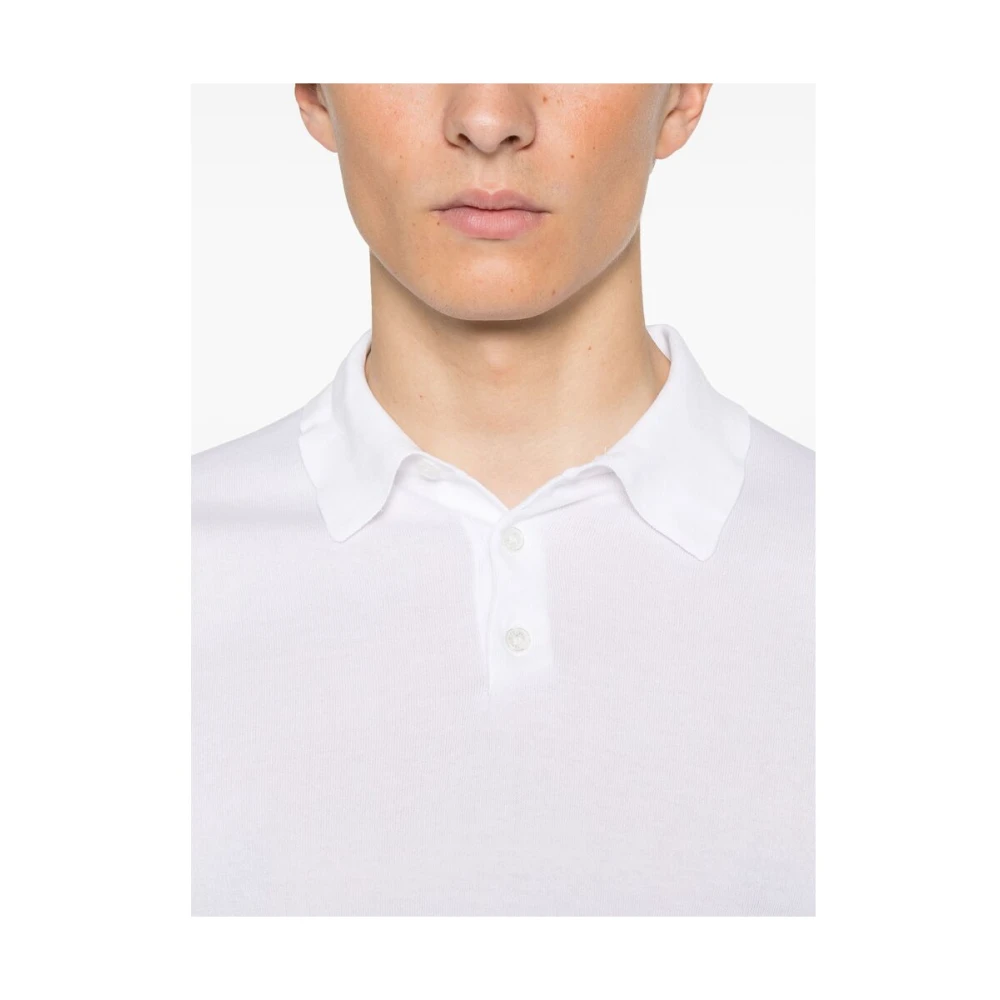 Upgrade je garderobe met dit stijlvolle witte Fedeli poloshirt voor heren met korte knoopsluiting aan de voorkant, lange mouwen en geribbelde manchetten en zoom.