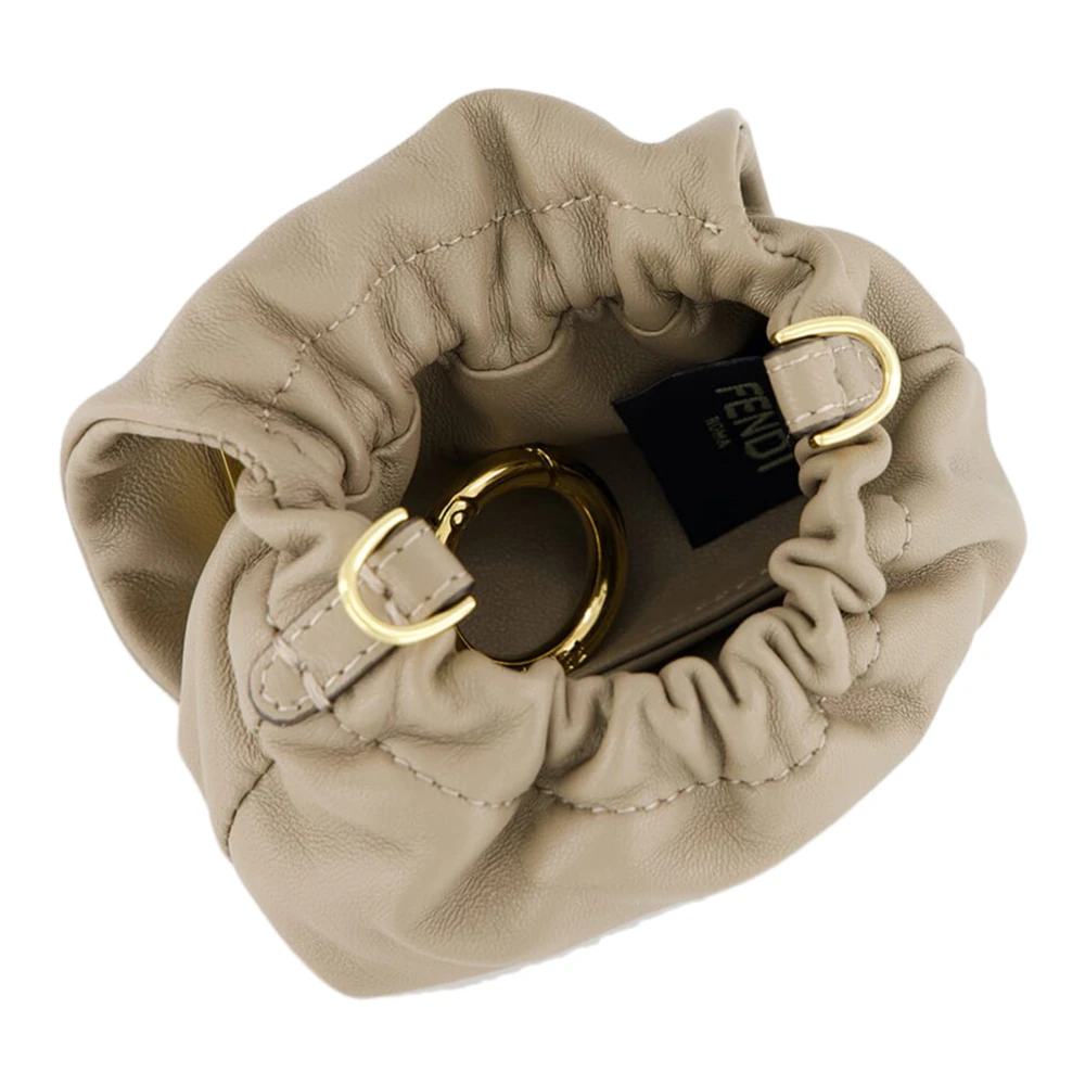 Upgrade je stijl met deze Fendi Bucket Bag. Gemaakt in Itali van 100% leer, deze tas heeft een chique FF-sluiting en magnetische sluiting onder de klep. Met een veelzijdig ontwerp kan het gedragen worden als een charm met de clip of als een schouder- en crossbodytas met de verstelbare kettingschouderband. Afmetingen: Hoogte 8 cm, Breedte 11 cm, Diepte 3 cm.