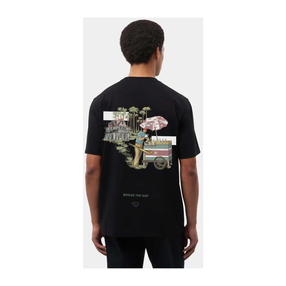 A nostalgic reflection on youth in summer, this T-Shirt captures the joyful memories and trips to Suriname. The artwork showcases the 'Palm Garden, ' a Surinamese ice-cream vendor ('Schaaf-ijs'), and an architectural office, all integral to founder Guillaume Philibert's roots in Suriname. Designed in collaboration with Gabriel Polo, a Brazilian artist and friend of the brand, this graphic evokes the spirit of joy and cultural connections.