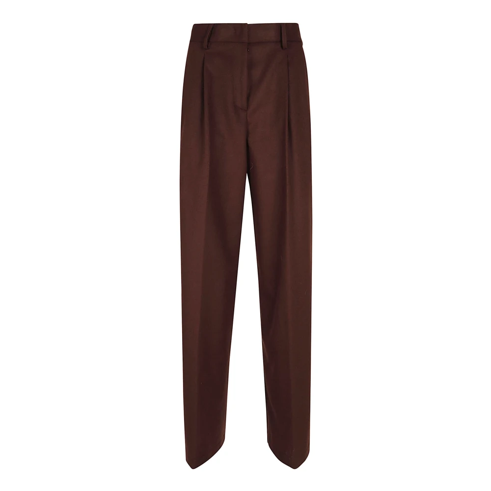 Upgrade je garderobe met de Forte Forte 13230.My broek. Gemaakt van luxueuze wol, deze elegante bruine broek heeft een ritssluiting, verborgen haak en stijlvol pence-ontwerp. Perfect voor elke gelegenheid, ze combineren comfort met high fashion