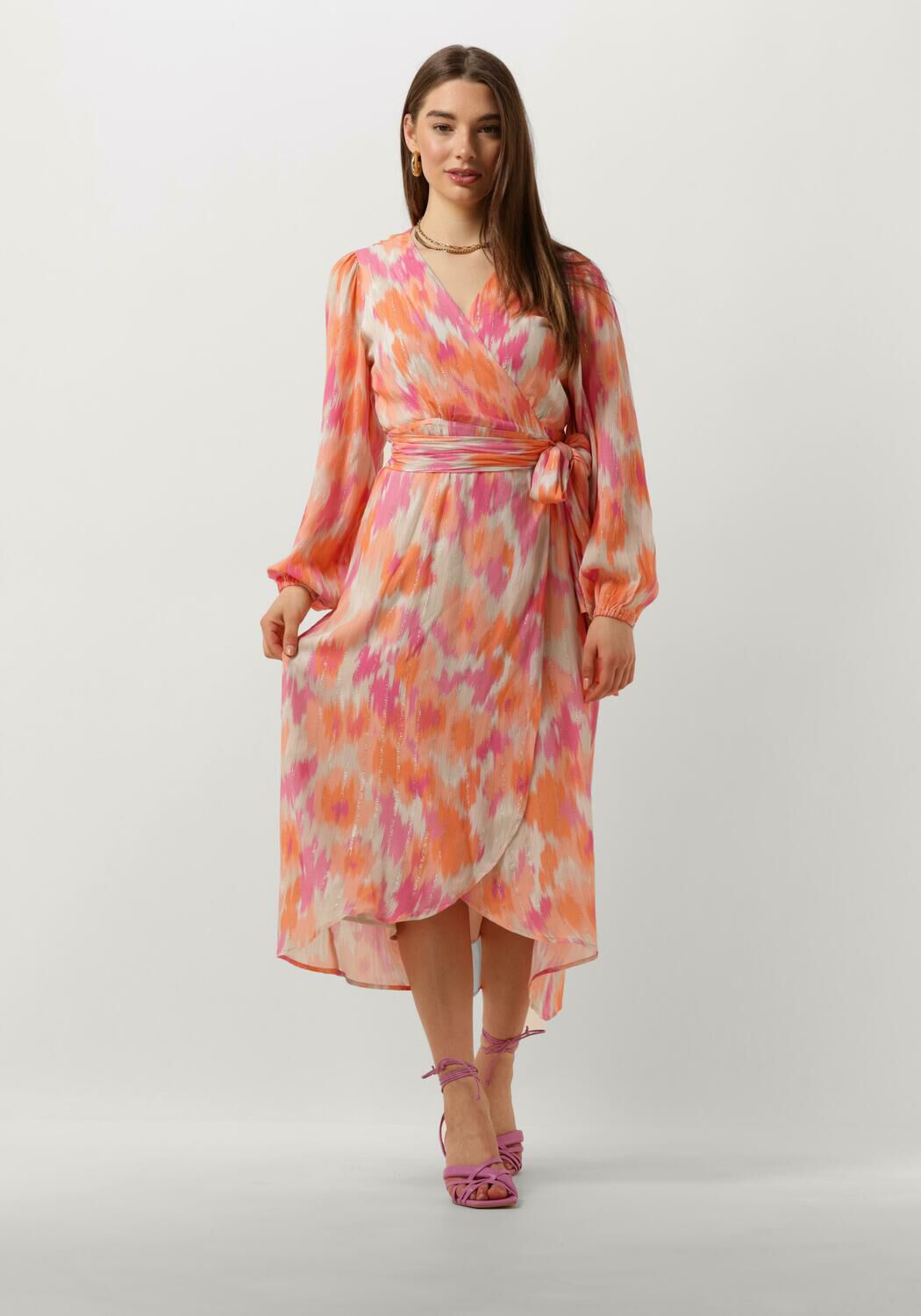 Je nieuwe favoriete jurkMaxijurk met printVhalsLange mouwen met elastische manchettenStrik detail in tailleGevoerdRegular fitSamenstellingWasvoorschriften