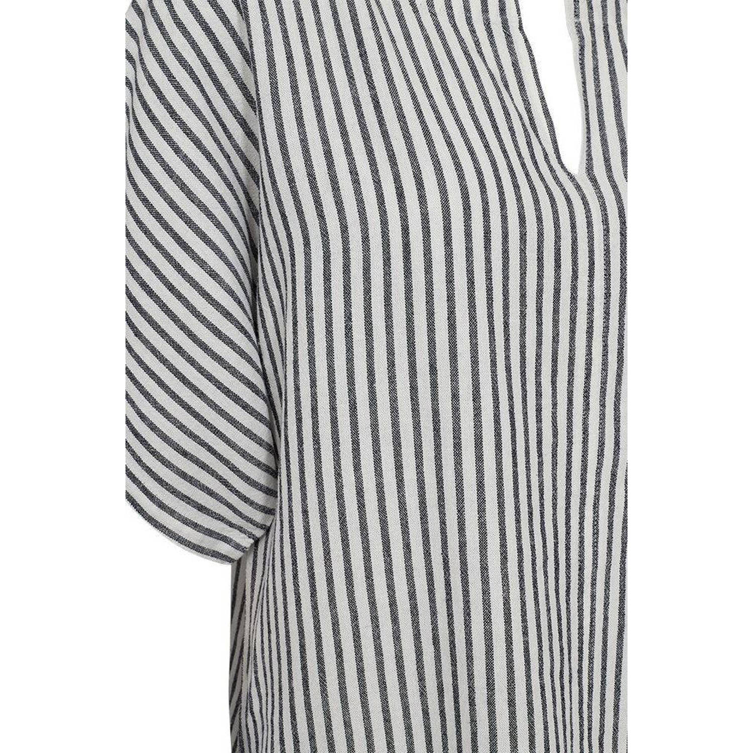 Deze FREEQUENT FQLAVISCO-BLOUSE voor dames heeft een rechtvallende pasvorm. Gemaakt van viscose en linnen, met korte mouwen en een V-hals. De top heeft een eenvoudige stijl zonder sluitingen of zakken.