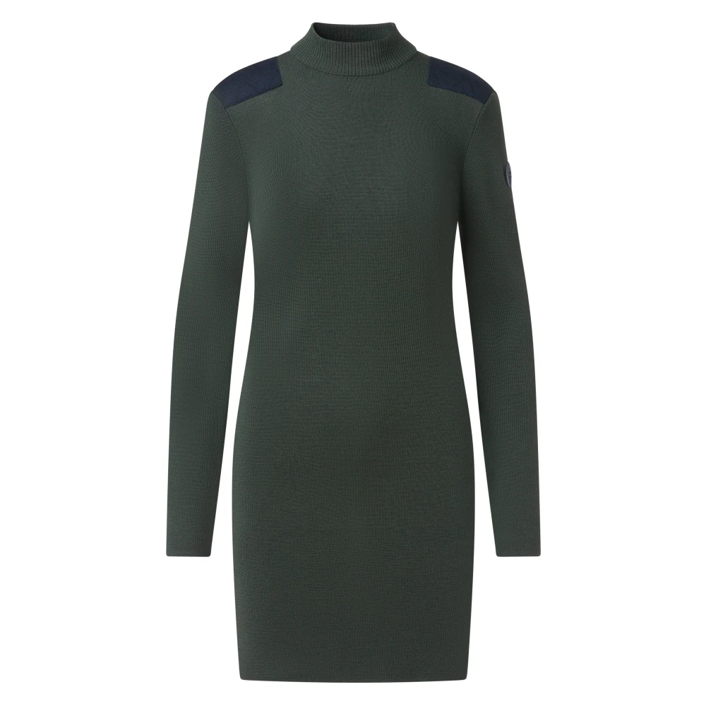 De Spinella-jurk belichaamt perfect de Fusalp-stijl. Gemaakt van dun, gestructureerd stretchbreisel, heeft het een ritssluiting in opstaande kraag en contrasterende gebreide jukken aan de zijkanten voor een iconische en figuurverbeterende uitstraling.
