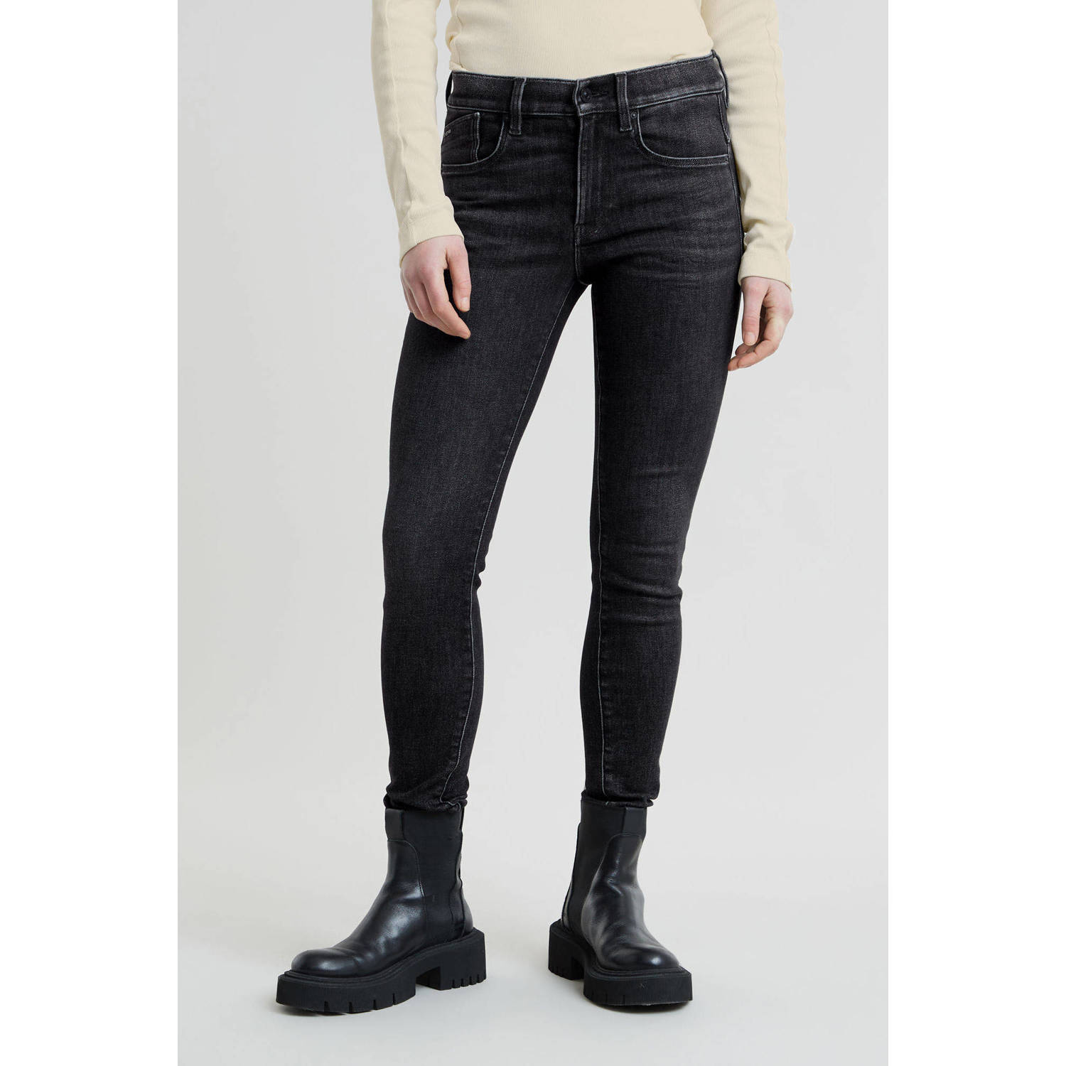 G-star Lhana high super skinny in sun faded Niagara mid blue stretch denim. Deze skinny broek heeft een iets hogere tailleband en ritssluiting. De makers van G-star hebben ook deze broek weer de juiste looks meegegeven. De achterzakken zijn zo gepositioneerd dat jouw achterwerk er op zijn best uit gaat zien! Lhana High blijft mooi in model en heeft een fijne pasvorm