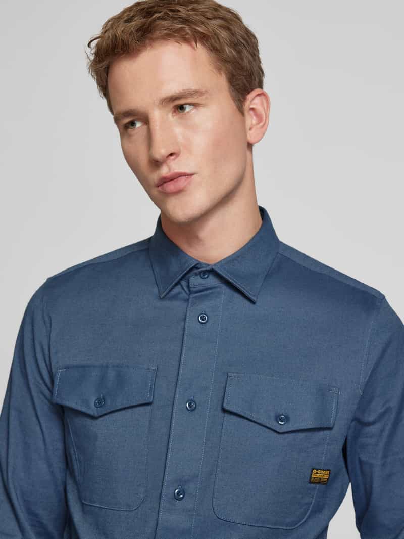 Vrijetijdsoverhemd voor heren van G-Star RAW. Katoenmix met stretchgehalte. Slim fit. Labelpatch. Opgestikte borstzakken. Kentkraag. Sportmanchetten. Doorknoopsluiting. Design met lange mouwen. Ruglengte bij maat M: 81 cm. Schouderbreedte bij maat M: 43 cm. Mouwlengte bij maat M: 67 cm