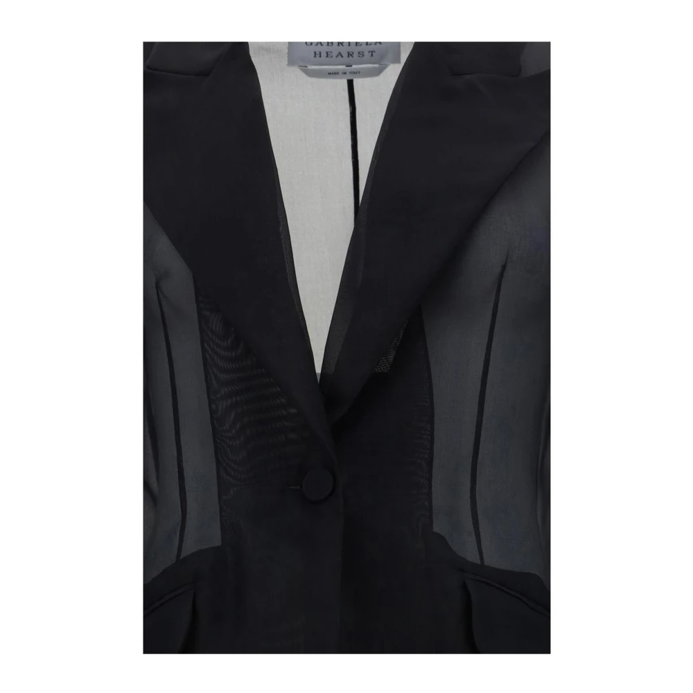 Upgrade je stijl met de Silk Leiva Blazer Jacket van Gabriela Hearst. Deze jas heeft brede speer revers, een knoopsluiting aan de voorkant, twee opgestikte zakken aan de voorkant, een split aan de achterkant en een semi-transparant ontwerp met een monochroom patroon. De regular fit en katoenen materiaal zorgen voor een comfortabele en chique uitstraling. Maat op label: It 40 | M.