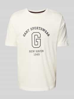 T-shirt van GANT voor heren. Puur katoen. Regular fit. Geribde ronde hals. Labelprint. Ruglengte bij maat M: 65 cm