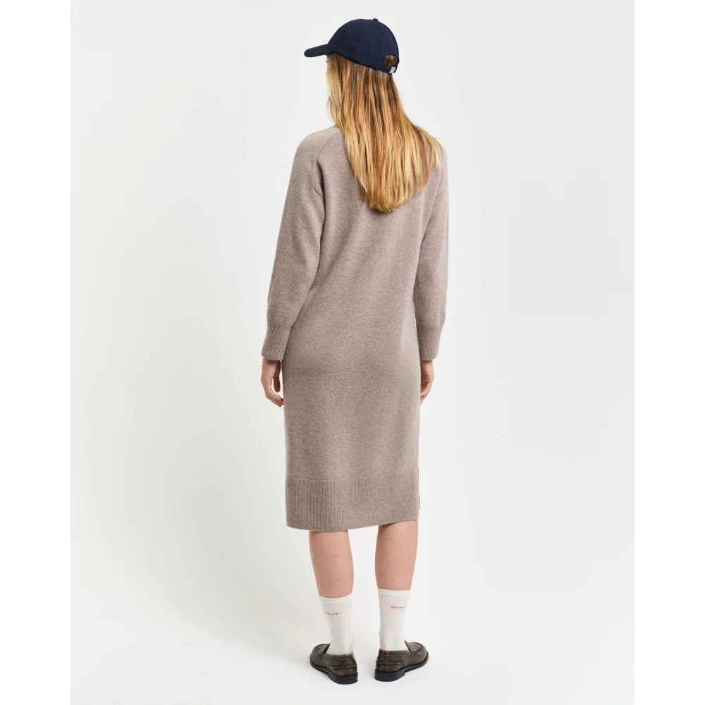 Gebreide damesjurk van GANT. Mix van wol en kasjmier. Recht model. Midi-jurk. Model 'HERRINGBONE'. Col. Raglanmouwen. Ruglengte bij maat S: 107 cm. Borstomvang bij maat S: 52 cm. Mouwlengte bij maat S: 49 cm