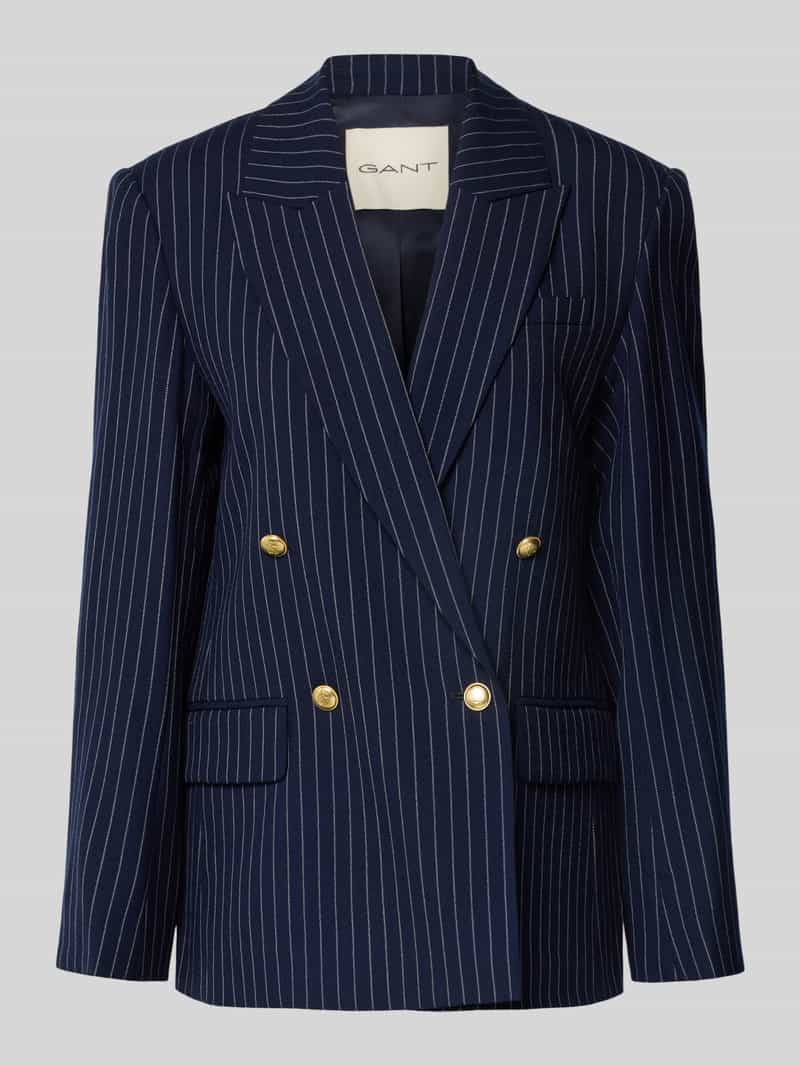 Damesblazer van Gant. Zuivere wol. Regular fit. Met dubbele rij knopen. Reverskraag. Klepzakken. Ruglengte bij maat 36: 70 cm. Borstomvang bij maat 36: 42 cm. Mouwlengte bij maat 36: 63 cm