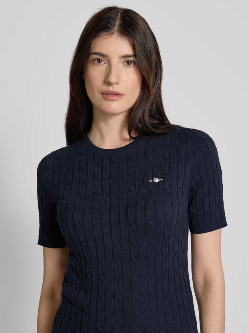 Gebreid damesshirt van Gant. Recht model. Kabelpatroon. Geribde ronde hals. Gestikt logo. Ruglengte bij maat S: 58 cm