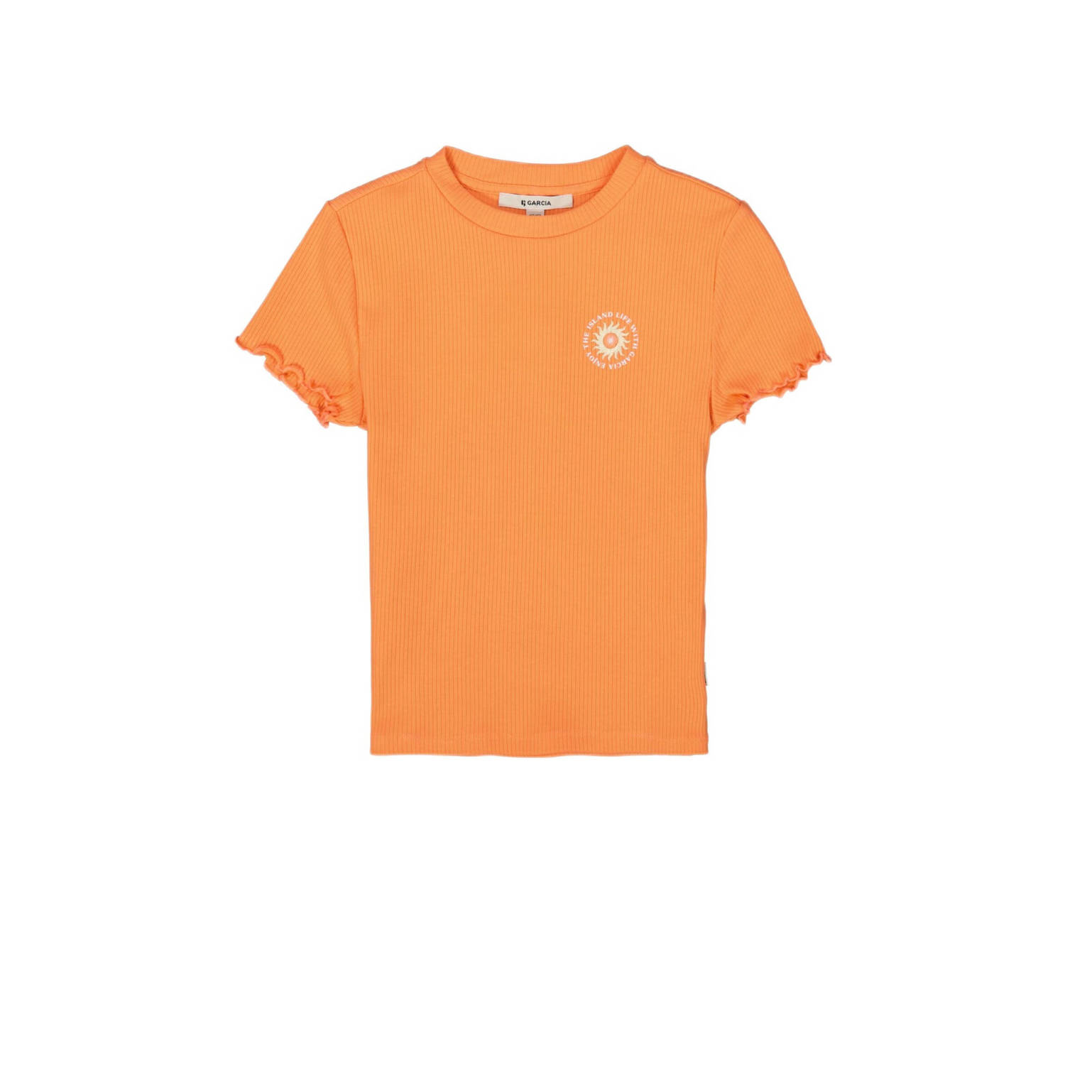 Dit T-shirt voor meisjes van Garcia is gemaakt van stretchkatoen. Het model heeft een ronde hals en korte mouwen
