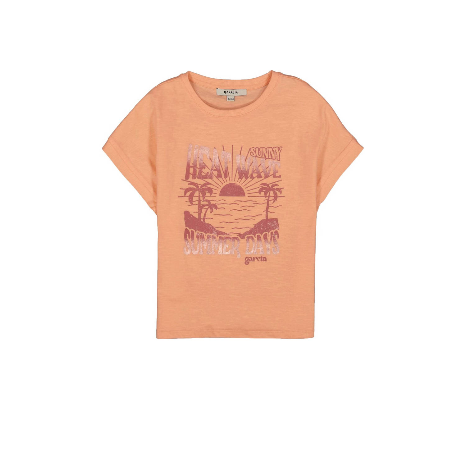 Dit T-shirt voor meisjes van Garcia is gemaakt van polyester en heeft een printopdruk. Het model heeft een ronde hals en korte mouwen