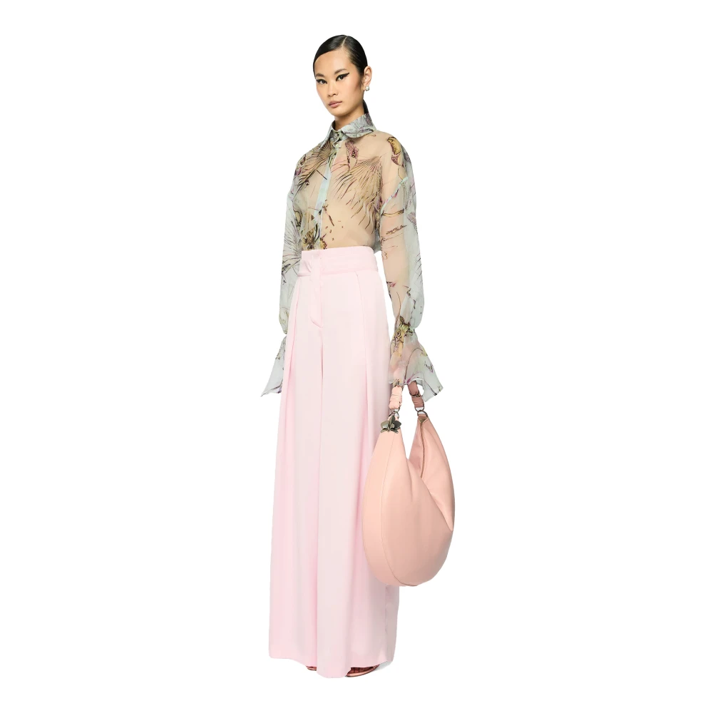 Upgrade je stijl met deze Genny wijde broek in pastelroze. Voorzien van een verborgen sluiting aan de voorkant met haak, knoop en rits, dubbele hoge taille met boxer-effect riem, zijzakken en plooien langs de heupen. Gemaakt in Itali van 100% polyester. Omarm de wijde pijp voor een chique en comfortabele look.