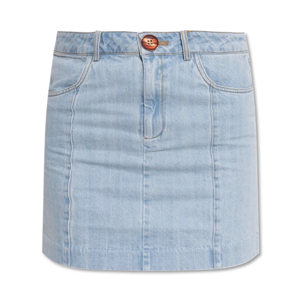 Jeansrok van GESTUZ. Puur katoen. Recht model. Minirok. Model 'Vella'. Riemlussen. Steekzakken. Bandwijdte bij maat 36: 37 cm. Totale lengte bij maat 36: 43 cm