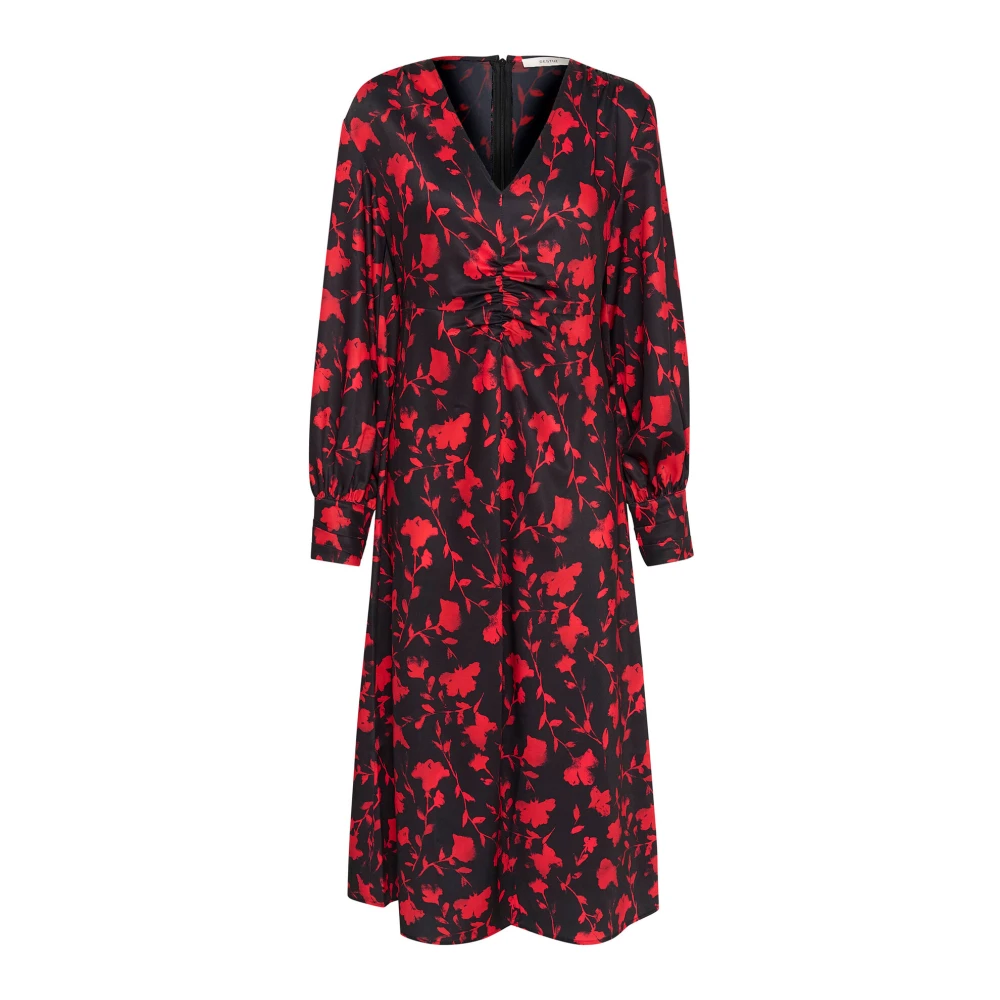 Elegante aansluitende maxi-jurk van Gestuz met lange mouwen, hoge hals en prachtige gedrapeerde effecten over de borst en rond de taille. Levering kan met 2-3 dagen worden verlengd als het item momenteel niet in onze winkel is.