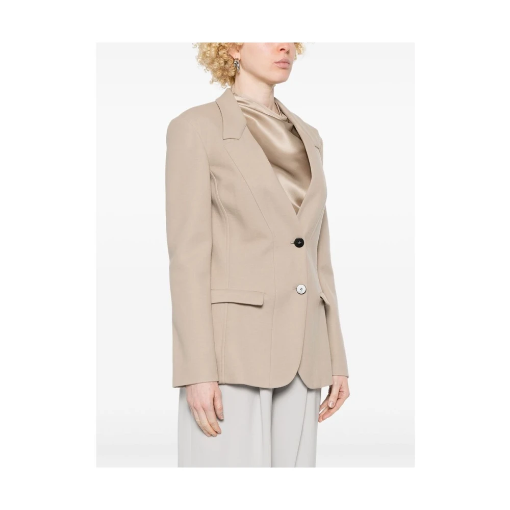 Upgrade je stijl met deze Giorgio Armani blazer in licht beige. Met knoopsluiting aan de voorkant, twee zijflapzakken en lange mouwen is deze jas perfect voor de moderne vrouw.