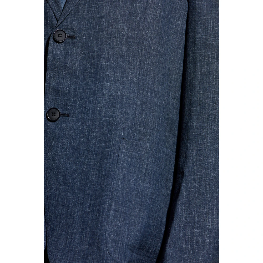 Upgrade je garderobe met deze prachtige blauwe jas van Giorgio Armani. Gemaakt van een luxueuze mix van wol, zuivere wol, zijde en linnen, biedt het zowel stijl als comfort. Perfect voor elke gelegenheid, deze jas is een must-have...