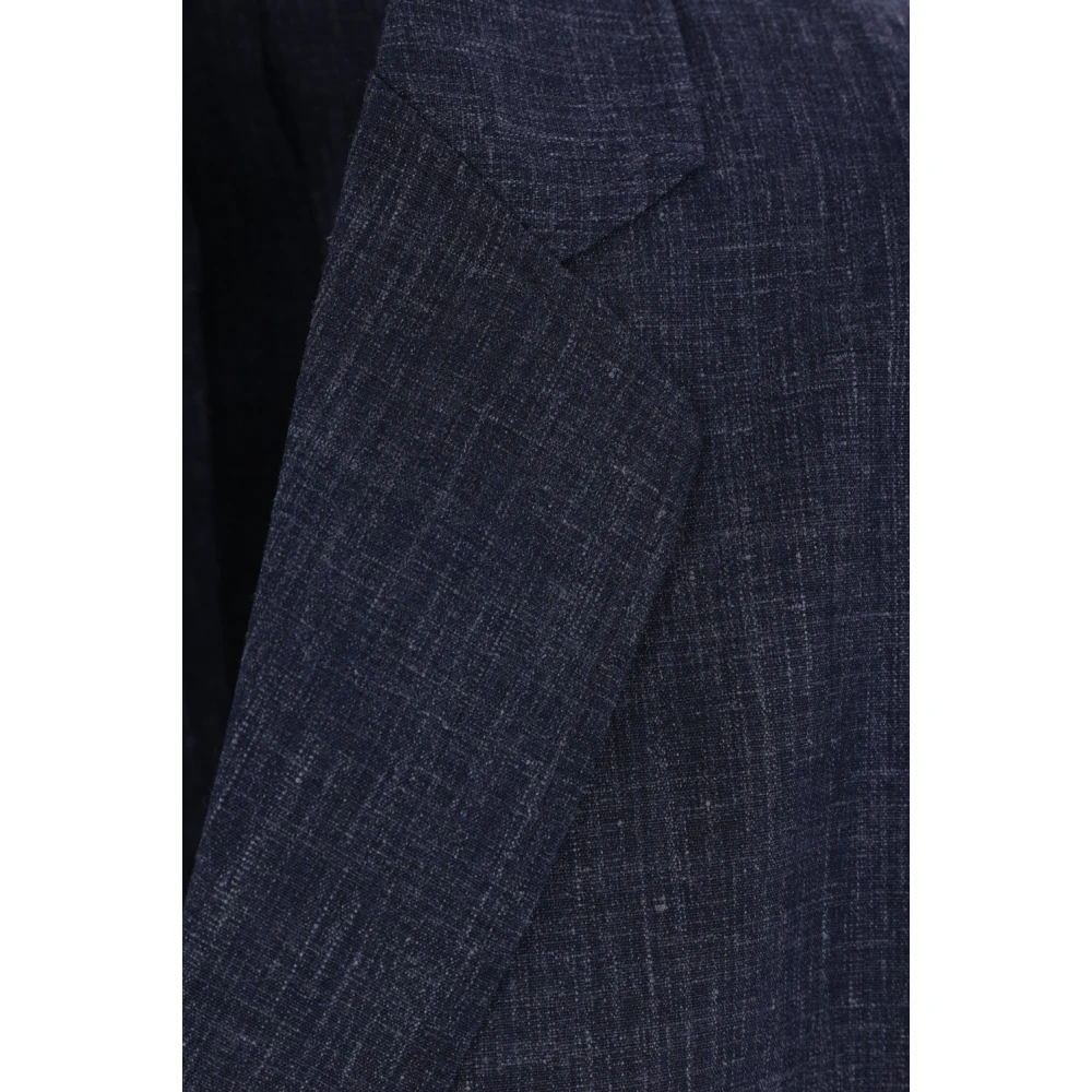 Upgrade je stijl met deze Giorgio Armani single-breasted jas gemaakt van een mix van wol, linnen en zijde in een klassieke blauwe kleur. Voorzien van een klassieke revers, knoopsluiting aan de voorkant, opgestikte zakken aan de voorkant, lange mouwen en een rechte zoom. Ongevoerd interieur. Maat IT; de aangegeven maat is die op het productlabel. Regular fit, valt normaal.