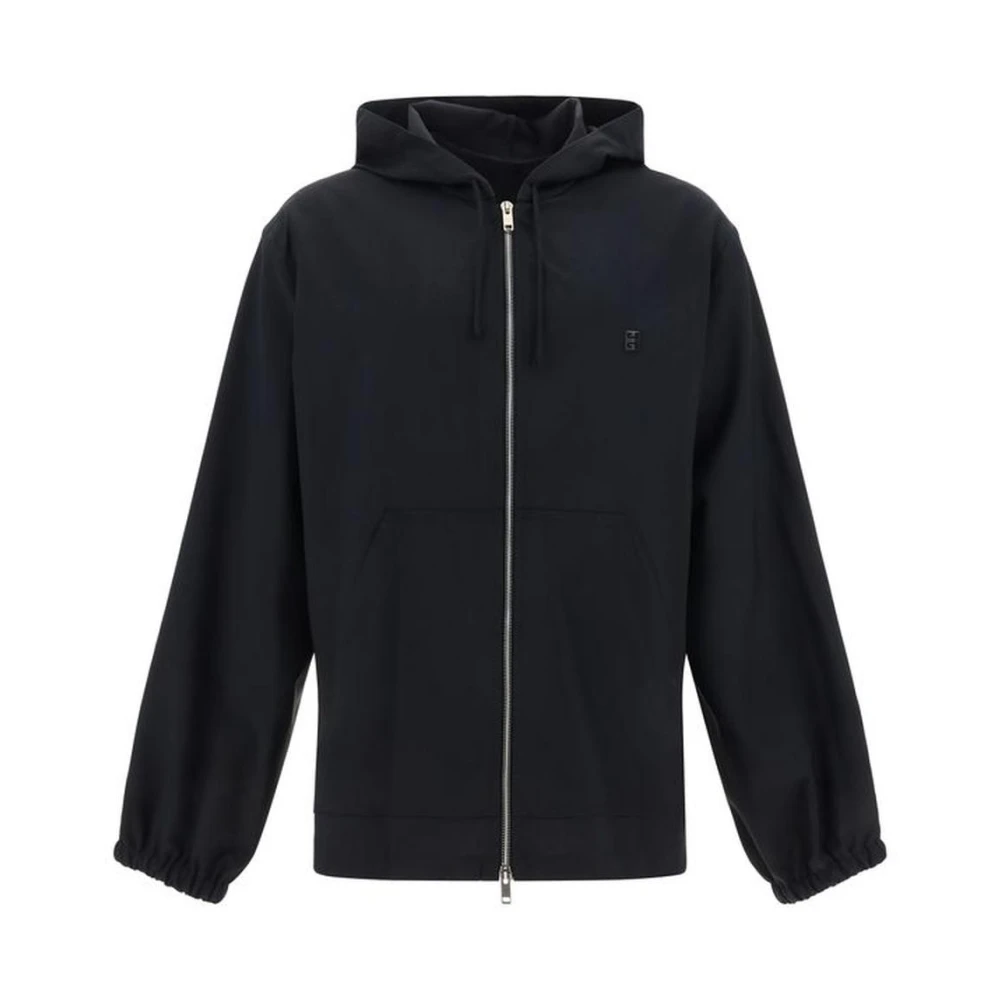 Blijf stijlvol en comfortabel met deze Givenchy zip-through hoodie voor mannen. Gemaakt van wol, met een verstelbare trekkoord capuchon, dubbele ritssluiting, elastische manchetten, twee voorzakken, logo-applicatie op de voorkant en een normale pasvorm